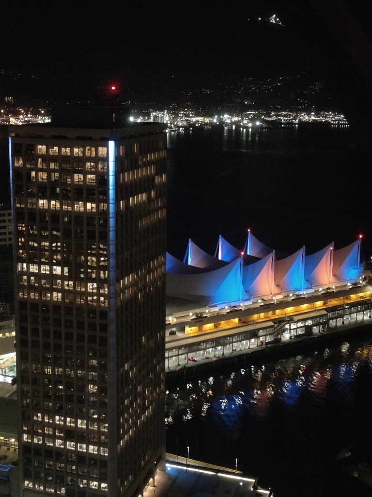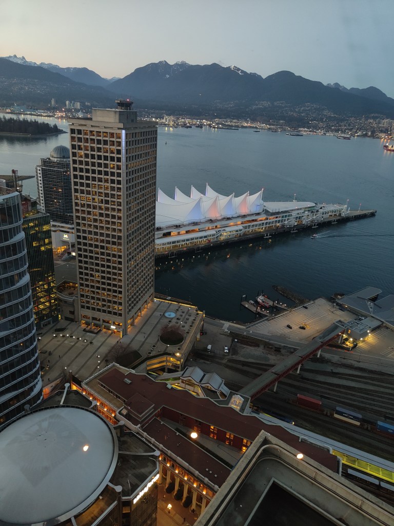 第二間推薦的浪漫約會行程非旋轉餐廳莫屬啦,位於加拿大廣場正對面的溫哥華景觀旋轉餐廳,是一個位於553呎高空上的餐聽,大約是50層樓高,旋轉一圈大約需要45分鐘,最迷人的地方當然是可以邊用餐邊欣賞溫哥華360度的美景,這是我第一次體驗旋轉餐廳,沒想到會這麼驚艷,看著日落餘暉一點一點慢慢下沉,萬家燈火也逐漸點起,心裡有說不出來的感動,這座城市真的好美,恬靜舒適,慢慢悠悠,寧靜又不失繁華,記得當天的餐點點了牛排和紅酒再配上此等美景,真是一場美食饗宴,當天客人不多幾乎是包場了,我覺得也蠻適合特殊節日來的,浪漫告白或求婚成功率應該會有神助攻的效果喔,如果是第一次到訪溫哥華的朋友,旋轉餐廳也會是不錯的選擇,等你來慢慢發掘溫哥華的美,從日落晚霞到晚景市容都可以一飽眼福,從高空俯瞰加拿大廣場夜景更是別有一番風味,快和你的愛人共度一場浪漫又難忘的晚餐吧。